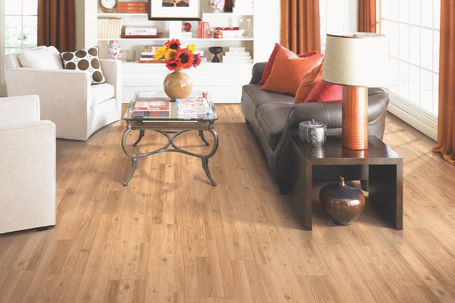 Laminate flooring is made up of wood byproducts with four layers that are fused. These layers include the backing, which adds support. Next is the core; HDF (high-density fiberboard) is the most stable and water-resistant. The image layer, created with 3D photography, is a true-to-life echo of wood, stone, or tile. On top is a transparent, aluminum-coated wear layer that protects the floor from scratches, scuffs, fading, and stains.