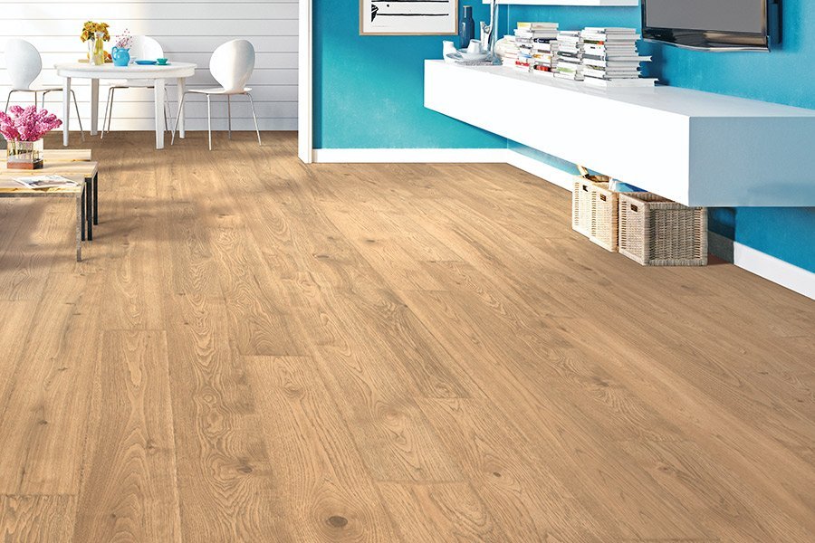These floors are visually appealing and durable, so there's no limit as to where you can use them. They're durable enough for high-traffic areas, such as the living area or foyer, and, thanks to a new waterproof version, they can also be installed in the kitchen or bath. Some popular species are oak, maple, cherry, chestnut, ash, pine, and walnut, with plank widths ranging from five or fewer inches to seven. Be sure to tell your flooring expert if you're using underfloor heating, as some require special mesh backings.